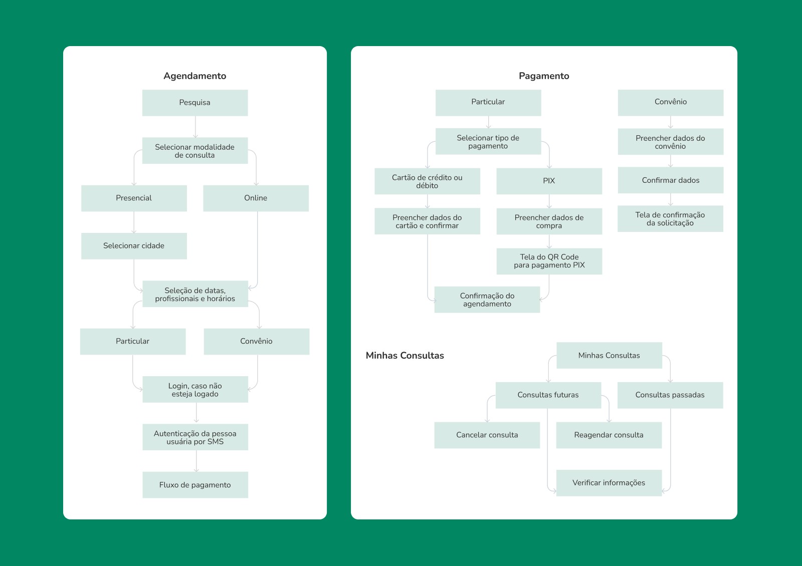 O objetivo, então, foi desenvolver um fluxo de checkout e gestão de consultas que fosse funcional para o negócio, mas acessível e seguro para uma base de usuários sensível.